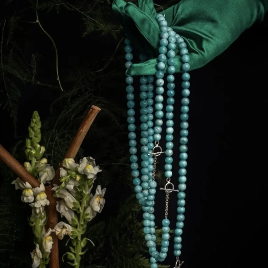 Calm, cool, and effortlessly chic—these amazonite bead toggle necklaces bring a refreshing pop of serene blue-green color to your everyday style. Crafted from smooth polished amazonite beads, each strand is finished with a 925 sterling silver clasp dipped in rhodium, offering a bright, tarnish-resistant shine that complements the natural beauty of the stones.