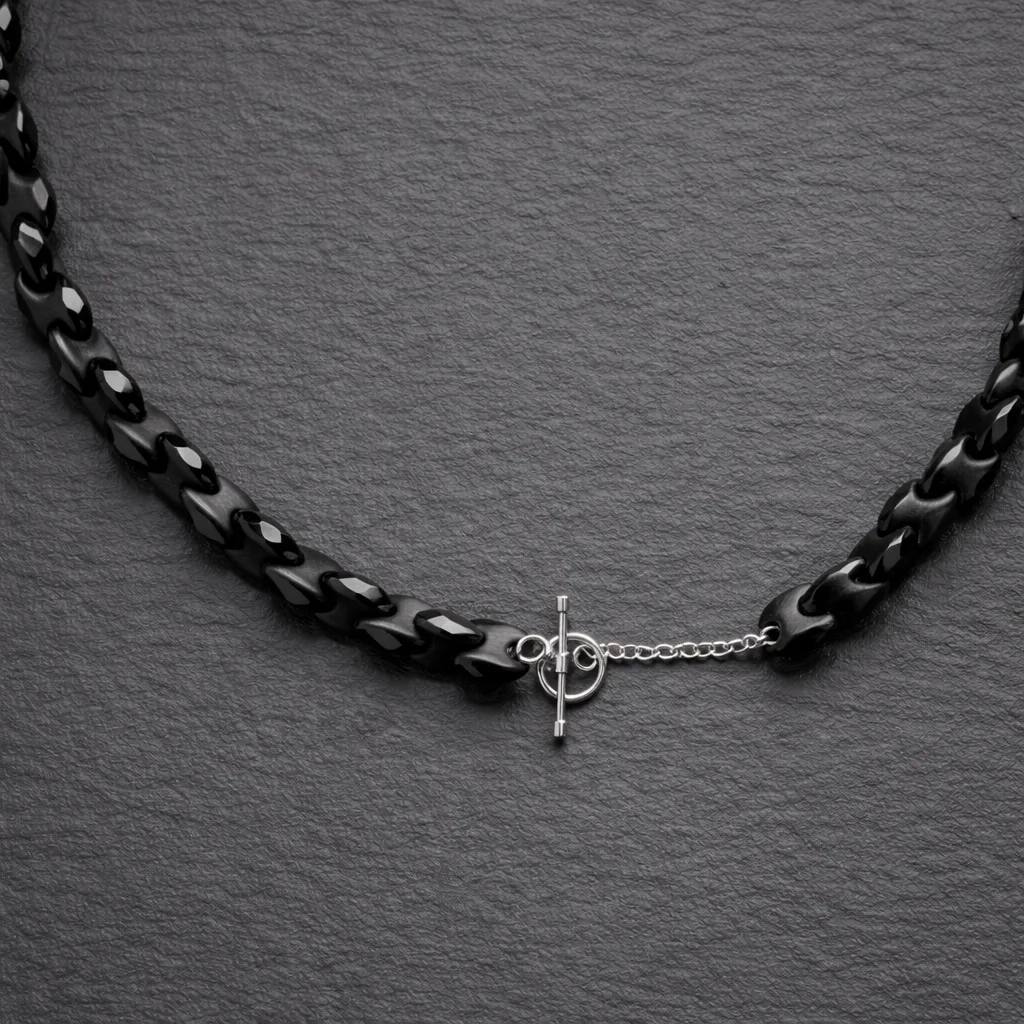 Finished with a 925v sterling silver toggle clasp dipped in rhodium, the shine stays cool-toned, sleek, and effortlessly durable—perfect for everyday layering or making a subtle statement on its own.