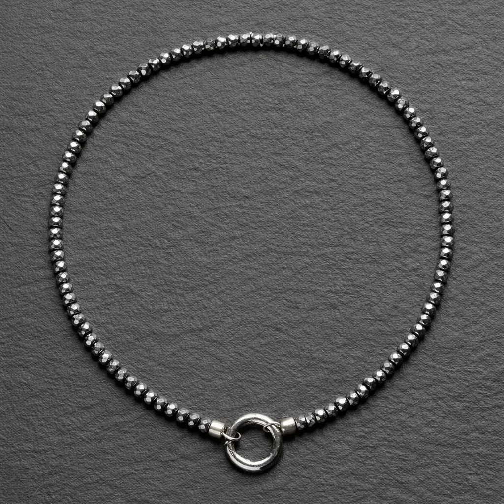 Sleek, modern and effortlessly cool, this hematine bead strand is designed for versatility as much as style. A continuous line of faceted hematine beads creates a soft metallic shimmer that reflects light with every movement, adding understated edge to both casual and dressed-up looks.
