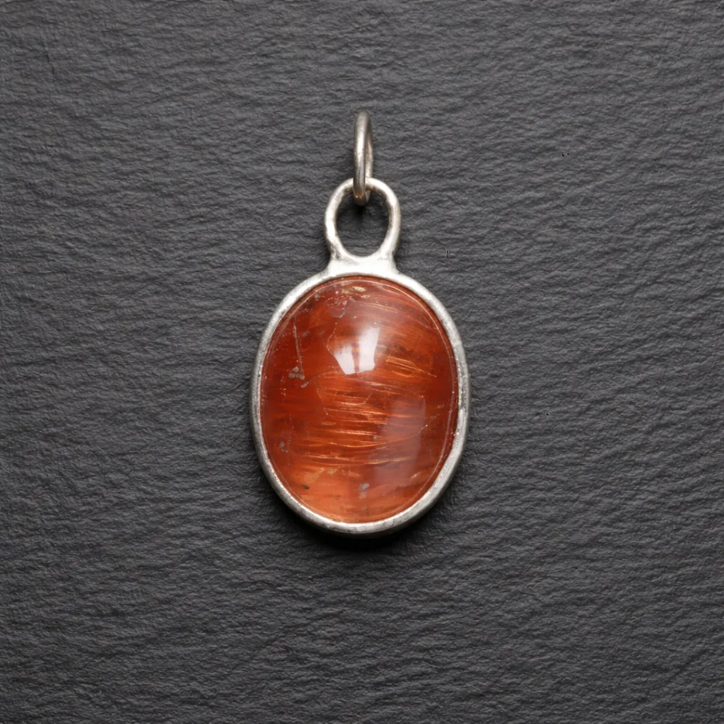 This pendant features a bold red rutilated quartz stone with natural streaks that look like lightning frozen inside crystal—each one totally unique. Set in 925 sterling silver dipped in rhodium, it has a clean, satin finish that keeps the look fresh and modern. It comes ready to wear on a leather strand for effortless layering or solo statement energy. Earthy, edgy, and a little mysterious, this piece brings main-character vibes with a touch of nature-core drama