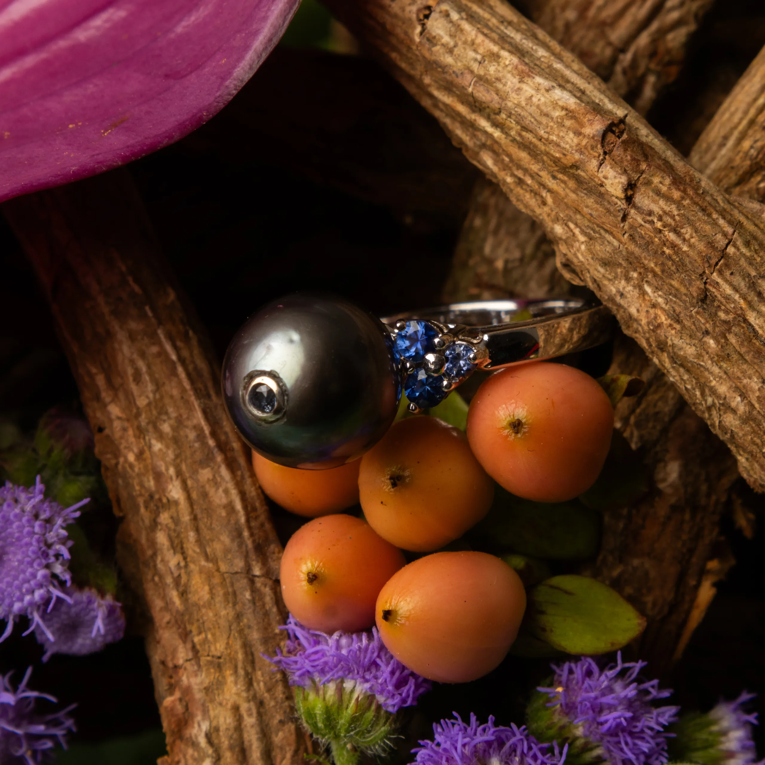 The Tala ng Karagatan Ring draws inspiration from the mystery and quiet power of the sea at night. At its center rests a striking black Tahitian pearl, known for its deep luster and subtle iridescent tones that shift with the light. Each pearl is naturally unique, giving the ring a character all its own.